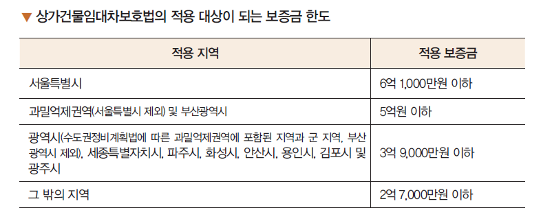 5. 대통령령으로 정하는 보증금액을 초과하더라도 다음과 같은 경우에는 상가임대차보호법이 적용됩니다.상가건물 표준계약서 작성 권장.임대차 기간 및 계약 갱신 요구.차임 연체에 따른 해지 특례. 대항력·권리금 회수 기회 보호.폐업에 따른 임차인 해지권(2022년 1월 4일 신설).